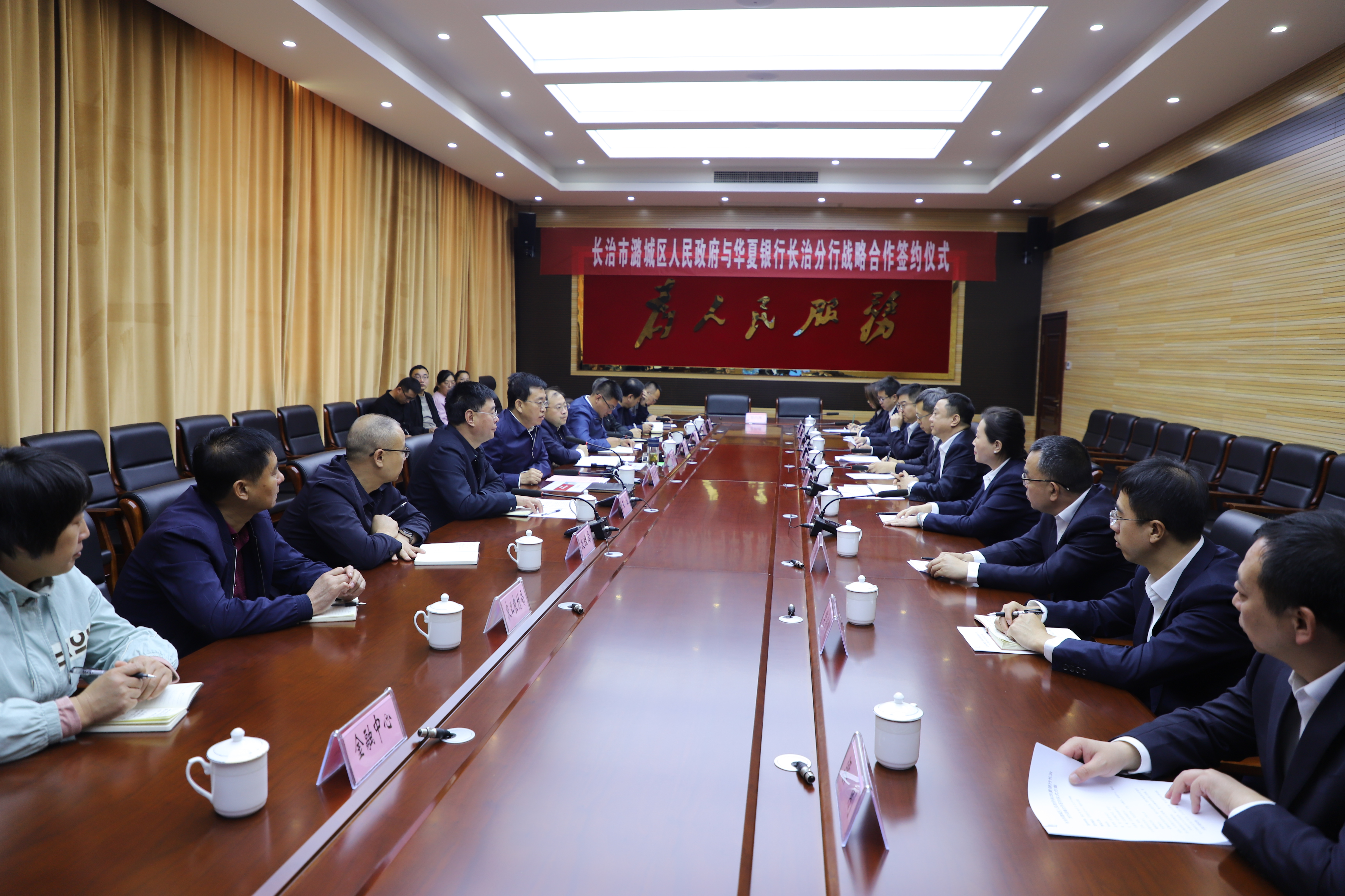 签约仪式上,区政府与华夏银行长治分行签署战略合作协议。大家共同观看了潞城区宣传片及华夏银行宣传片。