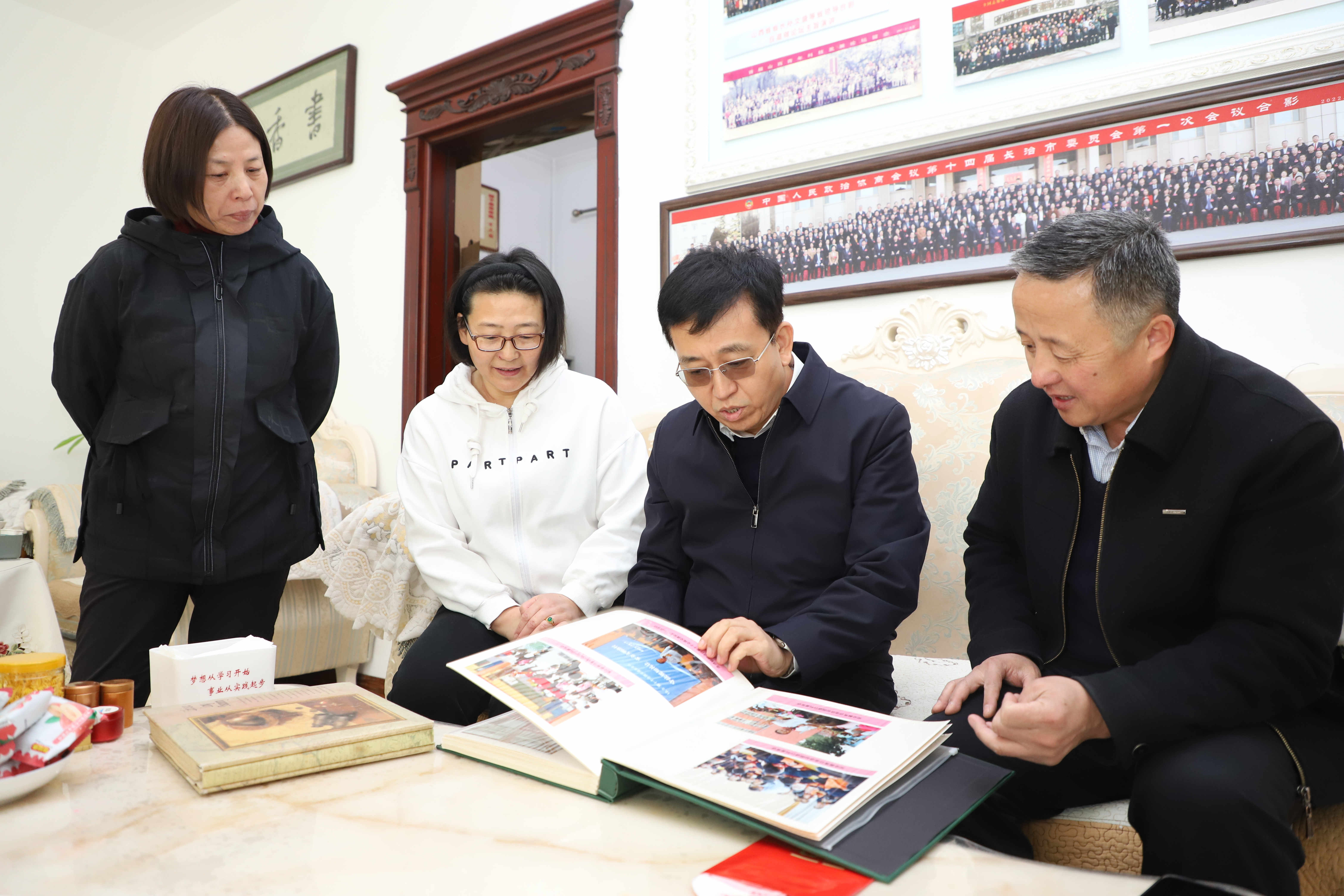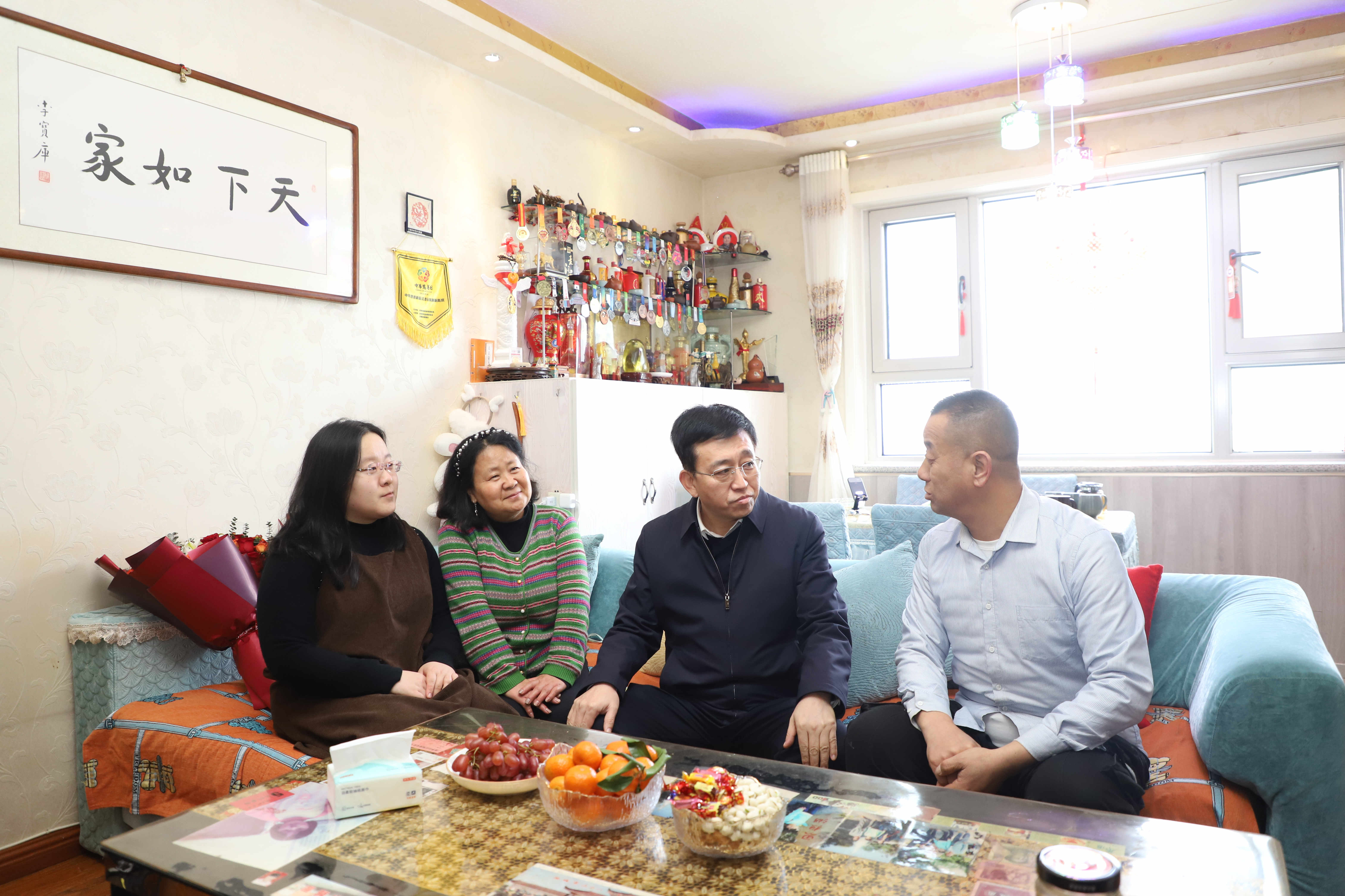 “今天来给大家拜个早年”在道德模范代表武显明家中,段尧刚与他和他的家人围坐在一起,听取了武显明无偿献血和志愿服务事迹,对他多年来坚持参与无偿献血和志愿服务表示感谢,并要求相关部门要继续加强对无偿献血者的关心关怀,进一步营造全社会尊重、爱护献血者的浓厚氛围,引导广大人民群众参与支持无偿献血和志愿服务活动,促进我区无偿献血事业健康发展。