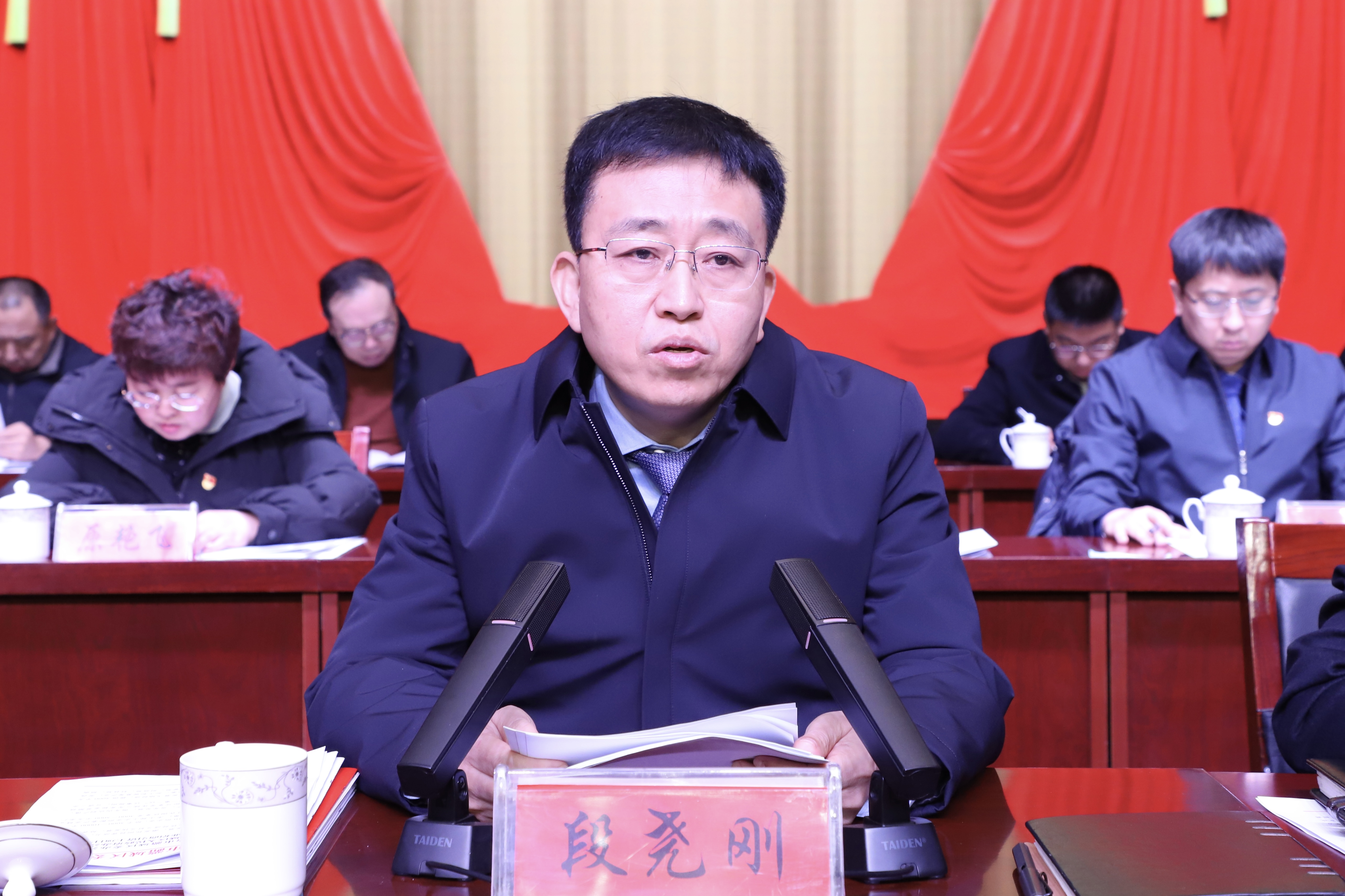 段尧刚、柴哲、赵锐、翟勇、琚海鹏、曹枫、李煜、张学良、平华、李向前、李钊等四套班子及其他处级领导出席会议。
