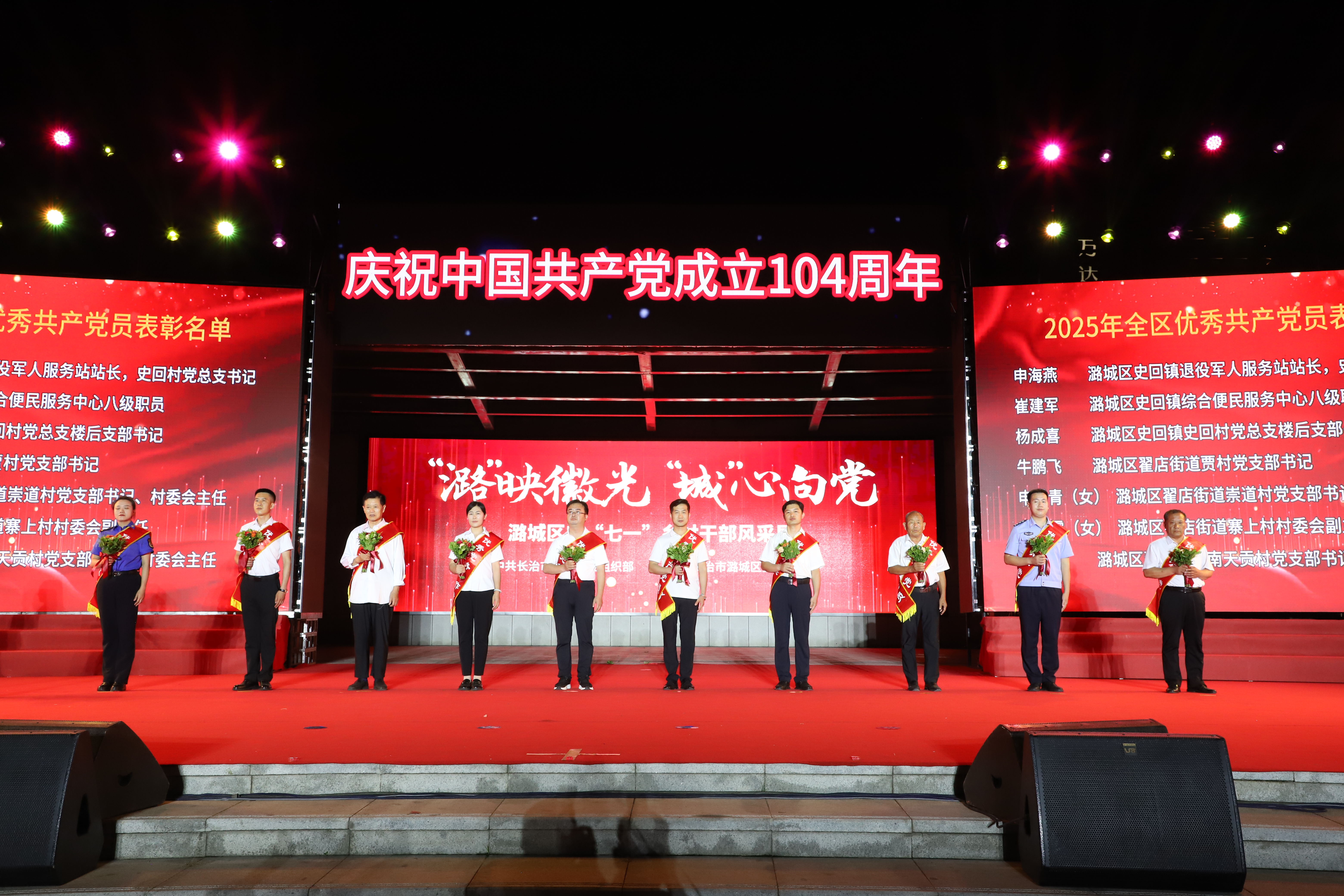 红旗漫卷,岁月如歌。为庆祝中国共产党成立104周年,6月30日晚,我区在世纪广场举办庆“七一”乡村干部风采展。晚会通过“赓续薪火”“躬耕沃野”“奋进征程”三个篇章,全景展现我区党员干部在历史传承中坚守初心的精神底色、在基层实践中扎根群众的实干担当、在时代浪潮中勇立潮头的奋进姿态。段尧刚、柴哲等区四套班子领导与广大市民齐聚一堂,共同见证基层一线奋斗者的动人风采。
