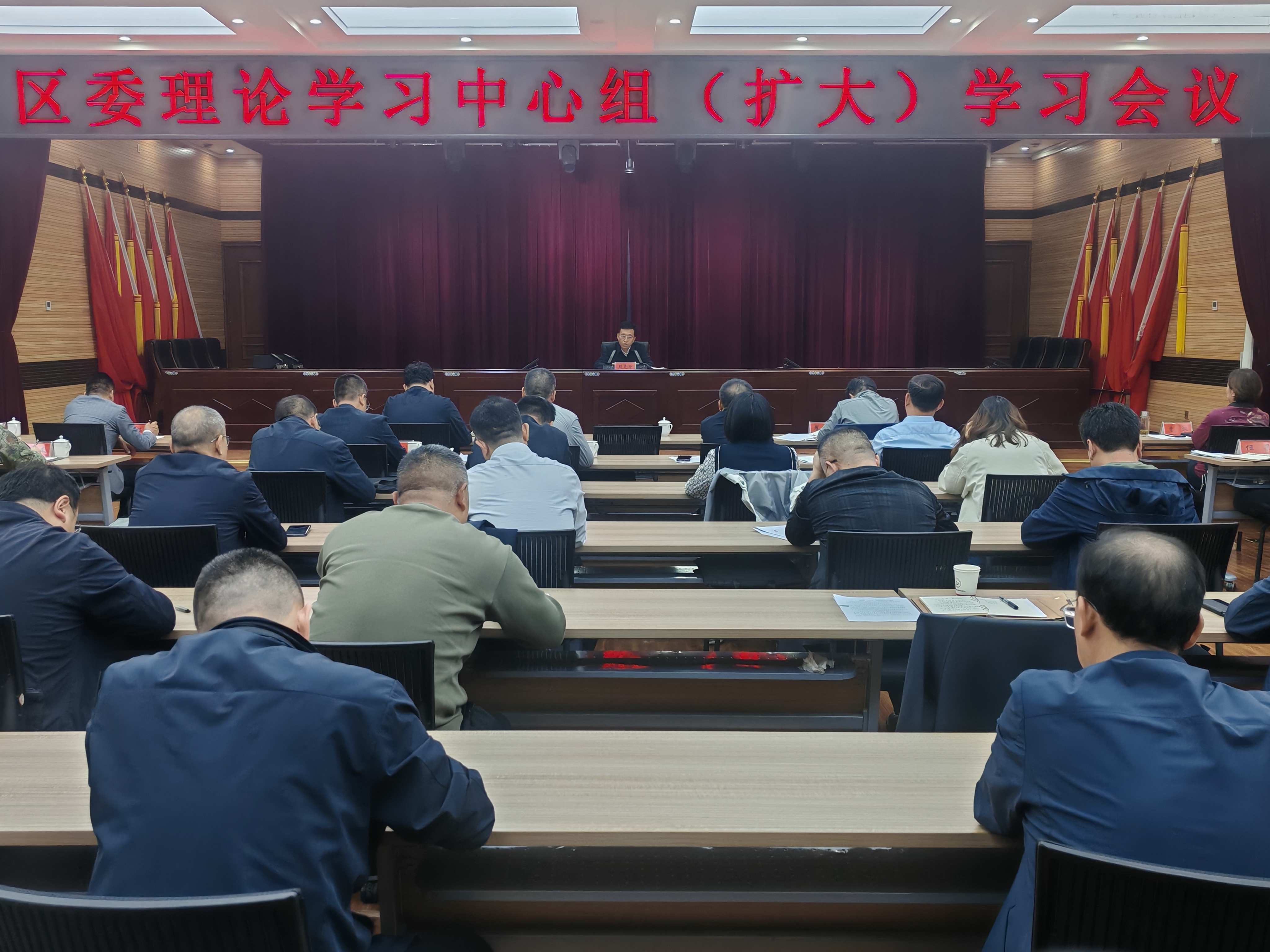 9月29日下午,区委理论学习中心组(扩大)学习会议召开 。区委书记段尧刚主持会议,区四套班子及处级领导出席,各乡镇(街道)党(工)委书记、区直相关单位主要负责同志参会 。