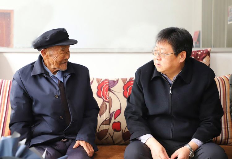 在退役军人申进宝家中,秦苏良向他送上鲜花和慰问金,并和老人一起回顾党的光荣历史、重温革命岁月,感谢他为祖国和平建设和潞城发展作出的贡献。