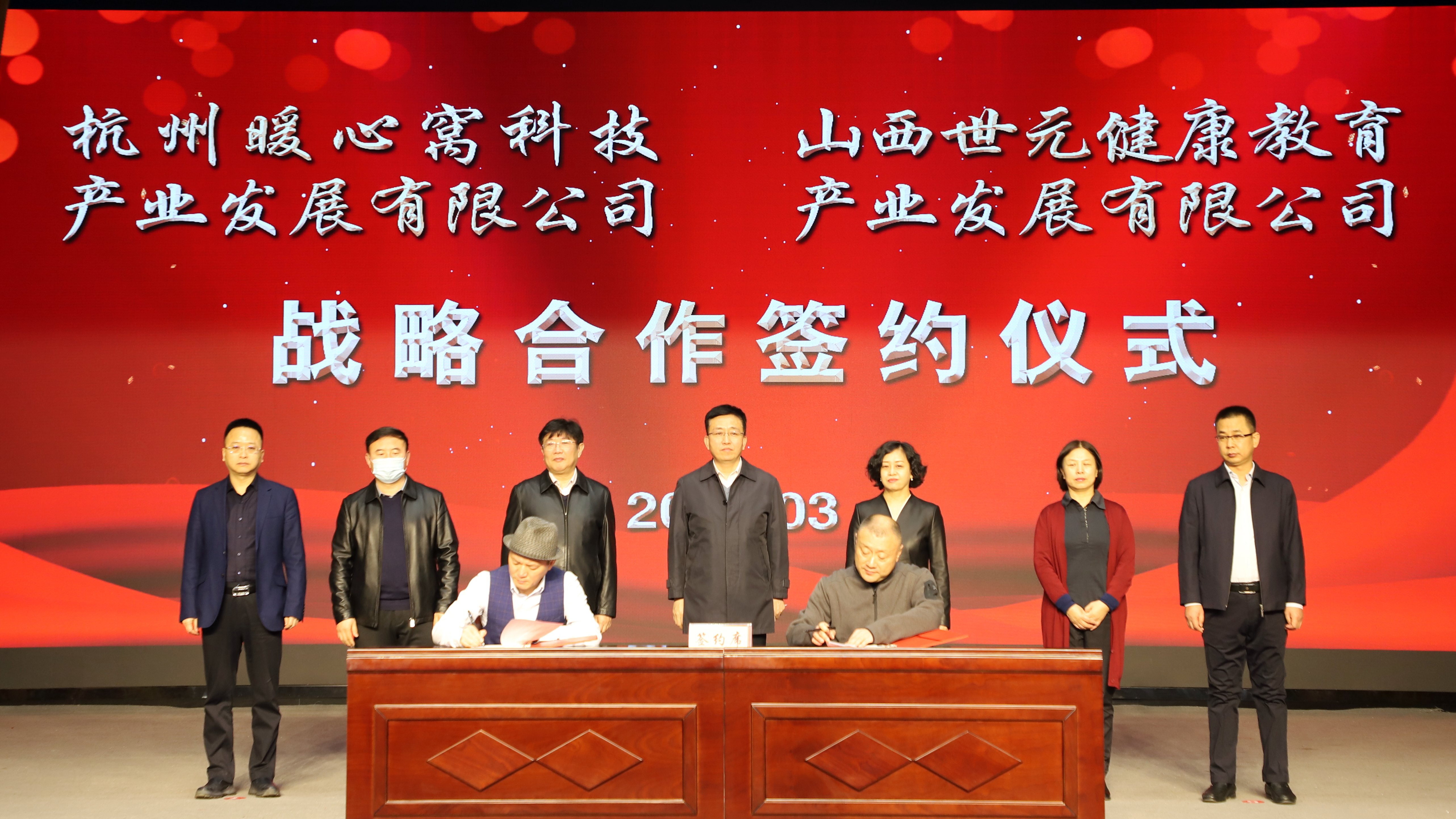 仪式上,山西世元健康教育产业发展有限公司负责人与杭州暖心窝科技产业发展有限公司负责人签订了战略合作协议。
