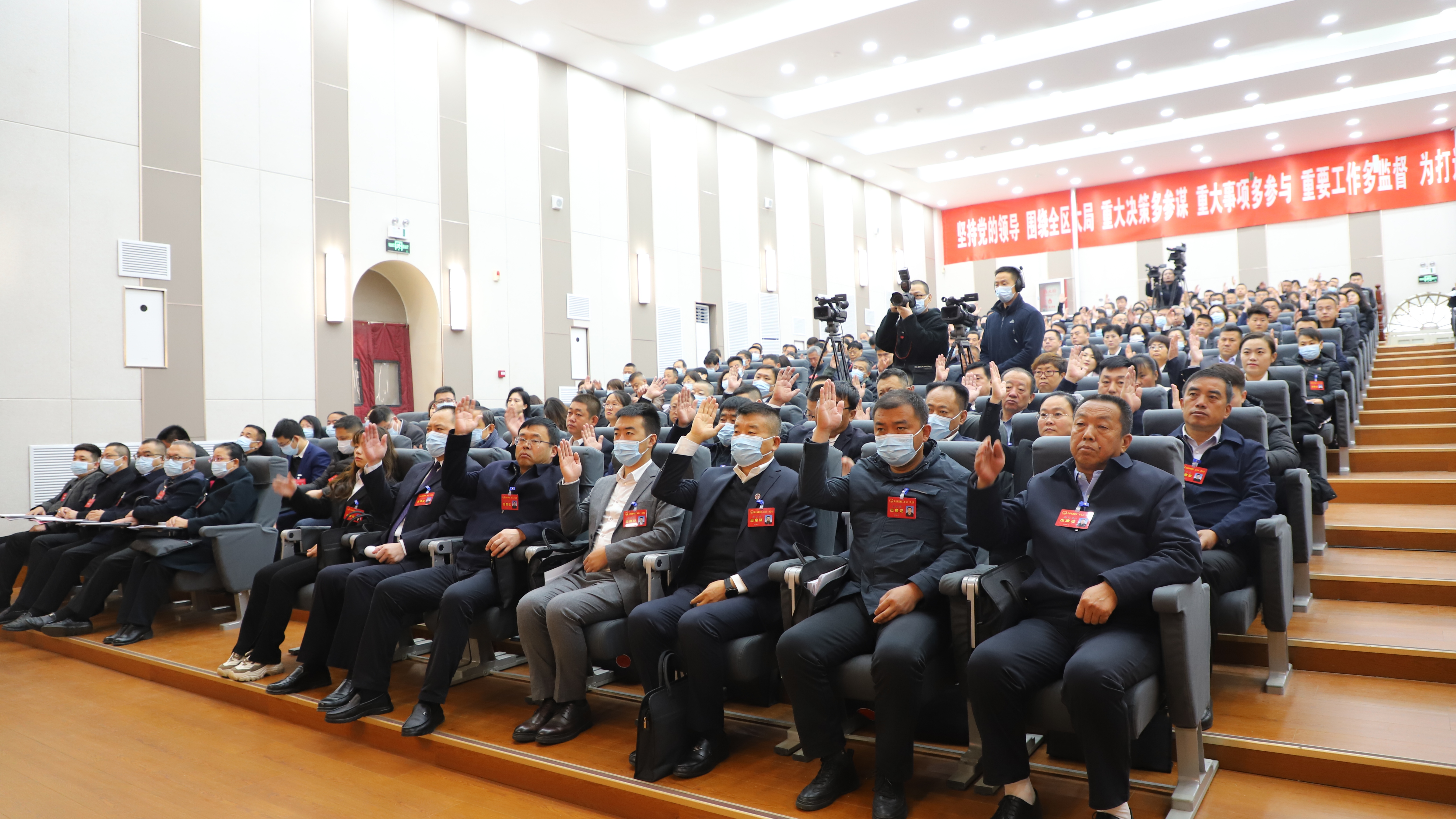 大会执行主席段尧刚、翟勇、柴哲、琚海鹏、杨忠民、赵云斌、李敏、韩旭军在主席台前排就座。大会主席团成员、区四套班子及其他处级领导、部分退休老领导在主席台就座。