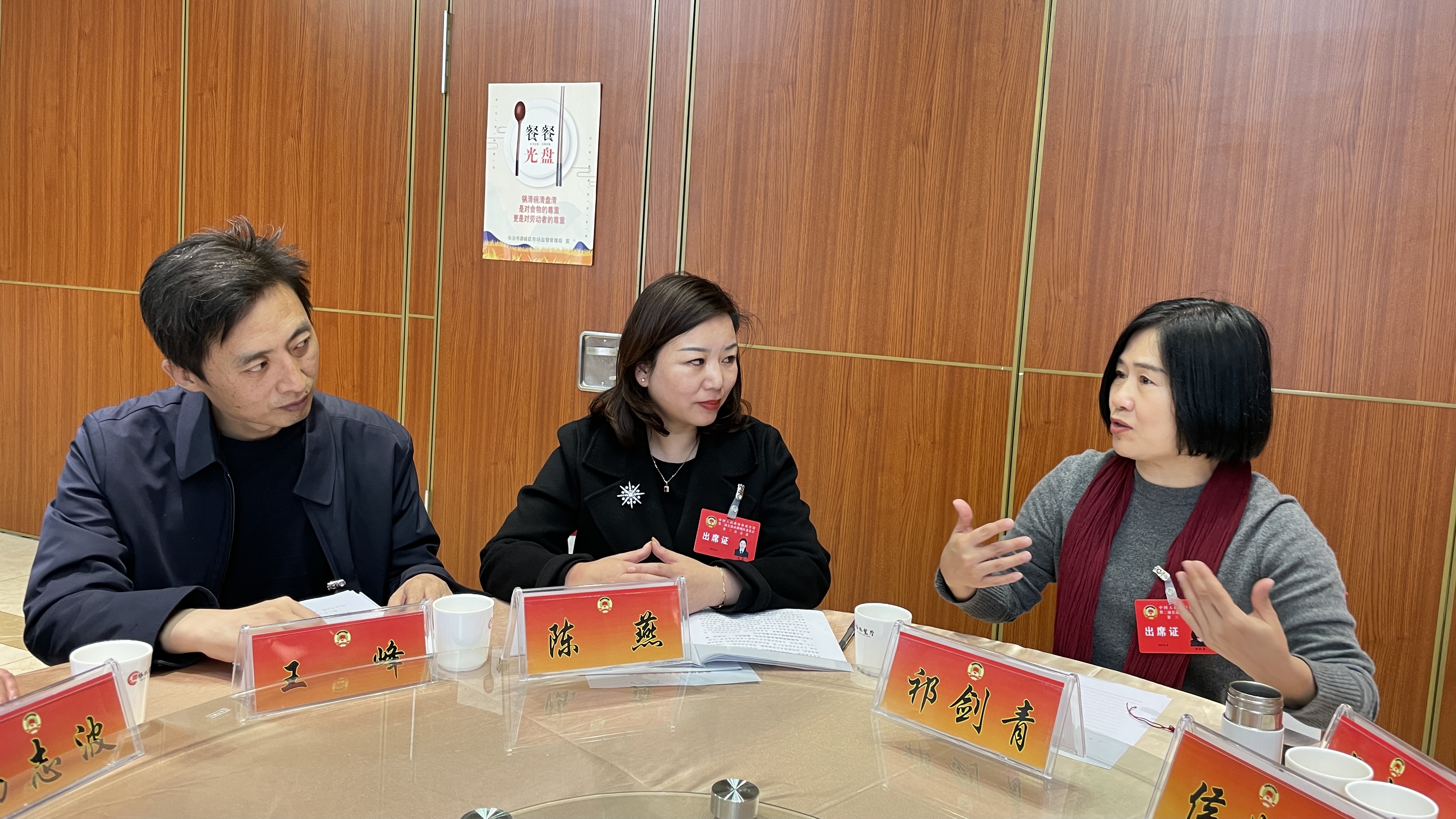 4月25日,出席列席长治市潞城区第二届人民代表大会第三次会议第一次全体会议的人大代表和政协委员,在各讨论点分别审议讨论政府工作报告。冯立功、李振亚、杨忠民、李敏、史高峰、陈优锋分别参加了各团审议。