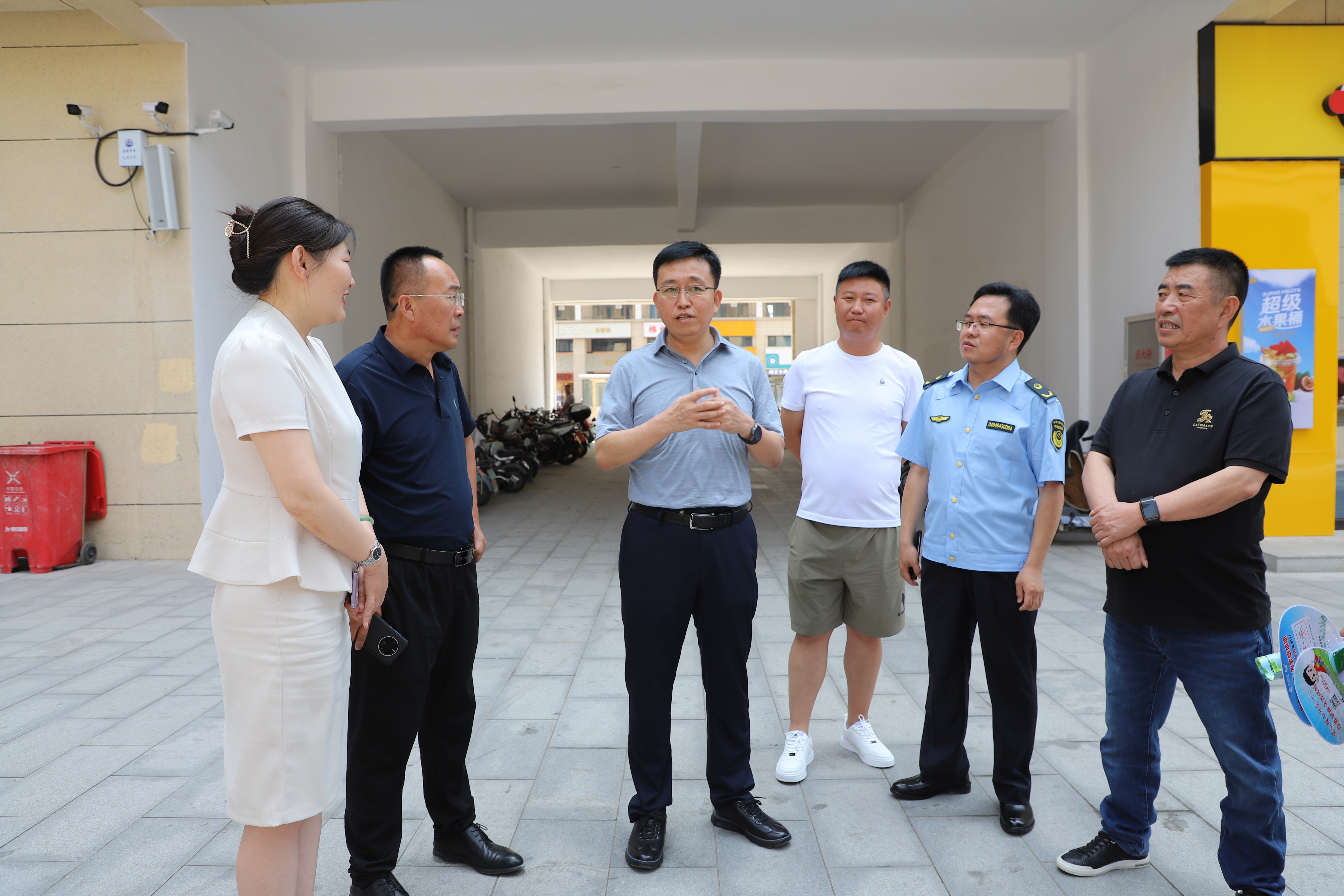 6月26日,区委书记段尧刚深入我区摩坊金街进行调研。区委常委、政法委书记李振亚,区人大常委会主任杨忠民,副区长、公安分局局长刘喜乐参加。区直相关单位负责人陪同。