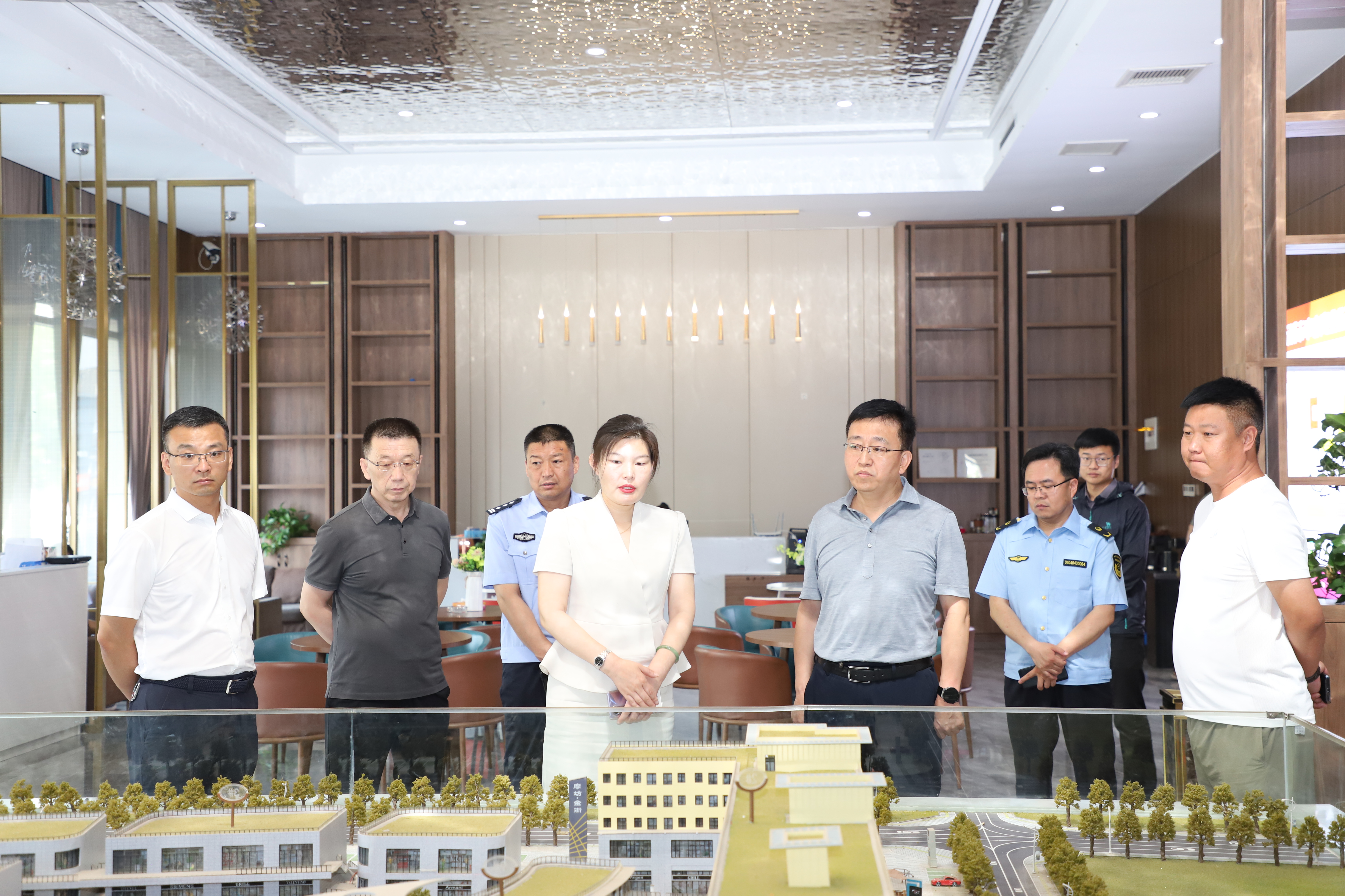 调研中,段尧刚一行查看了摩坊金街沙盘以及商场内部整体布局和商铺分布情况,听取了商场招商、运营和管理服务等工作汇报,对商场整体销售情况和经营情况进行了全面了解。