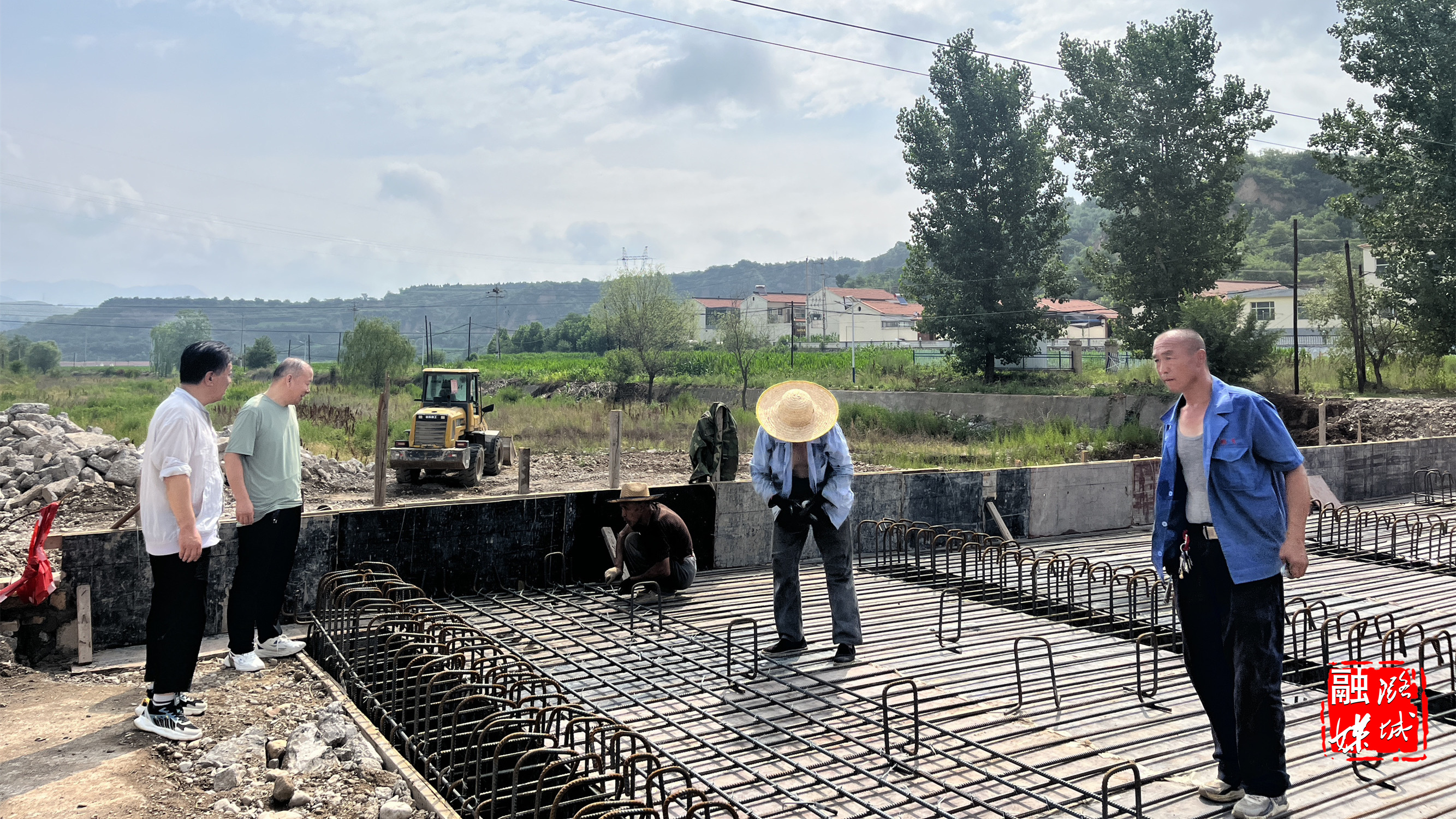 ▲黄牛蹄乡相关负责人到土脚村查看防洪坝加固项目建设情况。