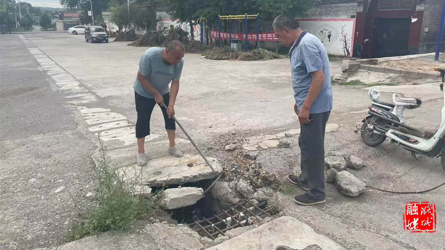 ▲翟店街道相关负责人到村检查防汛期间河道清淤工作。