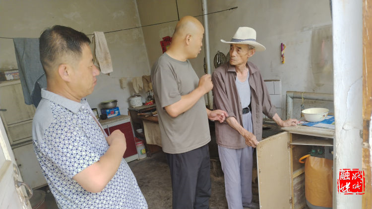 ▲微子镇相关负责人在韩家园村查看地质灾害周转房配套设施配置情况。