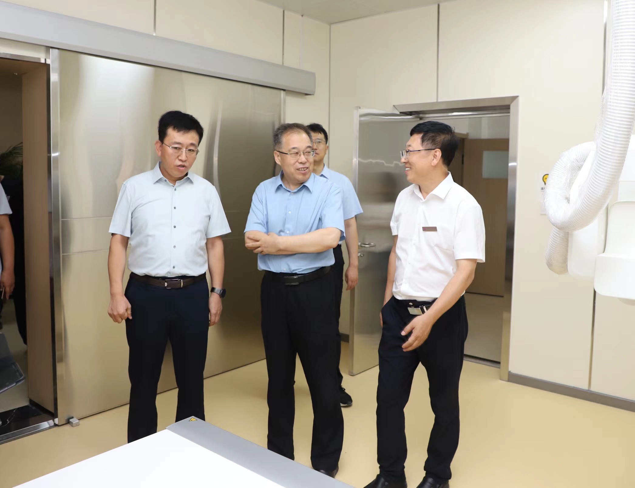 呼亚民一行走进长治市大健康公共服务基地,详细了解了项目建设情况和运行情况,对颐养中心内的体检区、检验区、智慧康复病房等地进行实地查看。