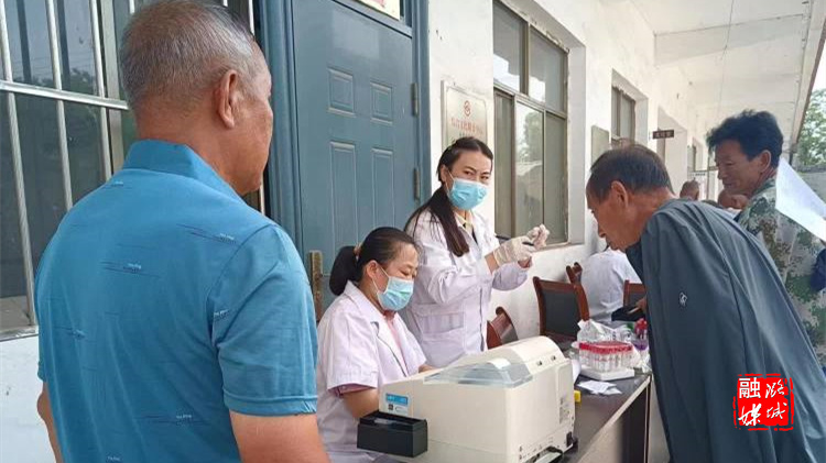 ★7月14日,店上镇店上卫生院医护人员到牛村为65岁以上老年人提供免费体检服务。