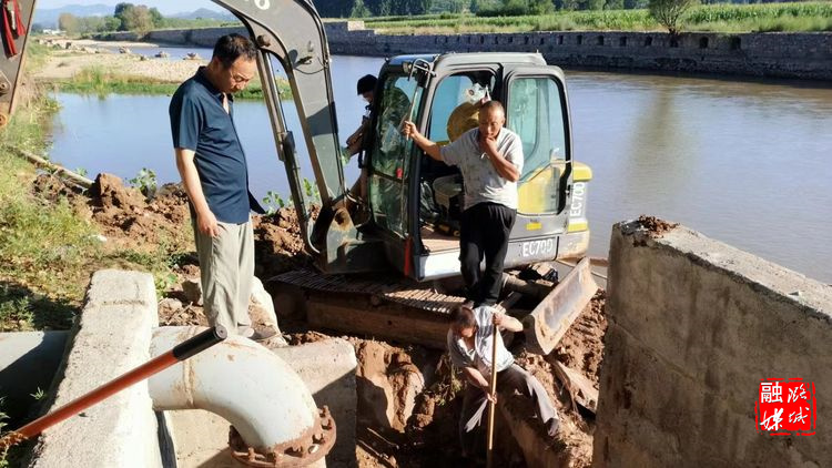 ★7月15日,辛安泉镇古城村组织人员维修基础水利设施,做好抗旱保灌工作。