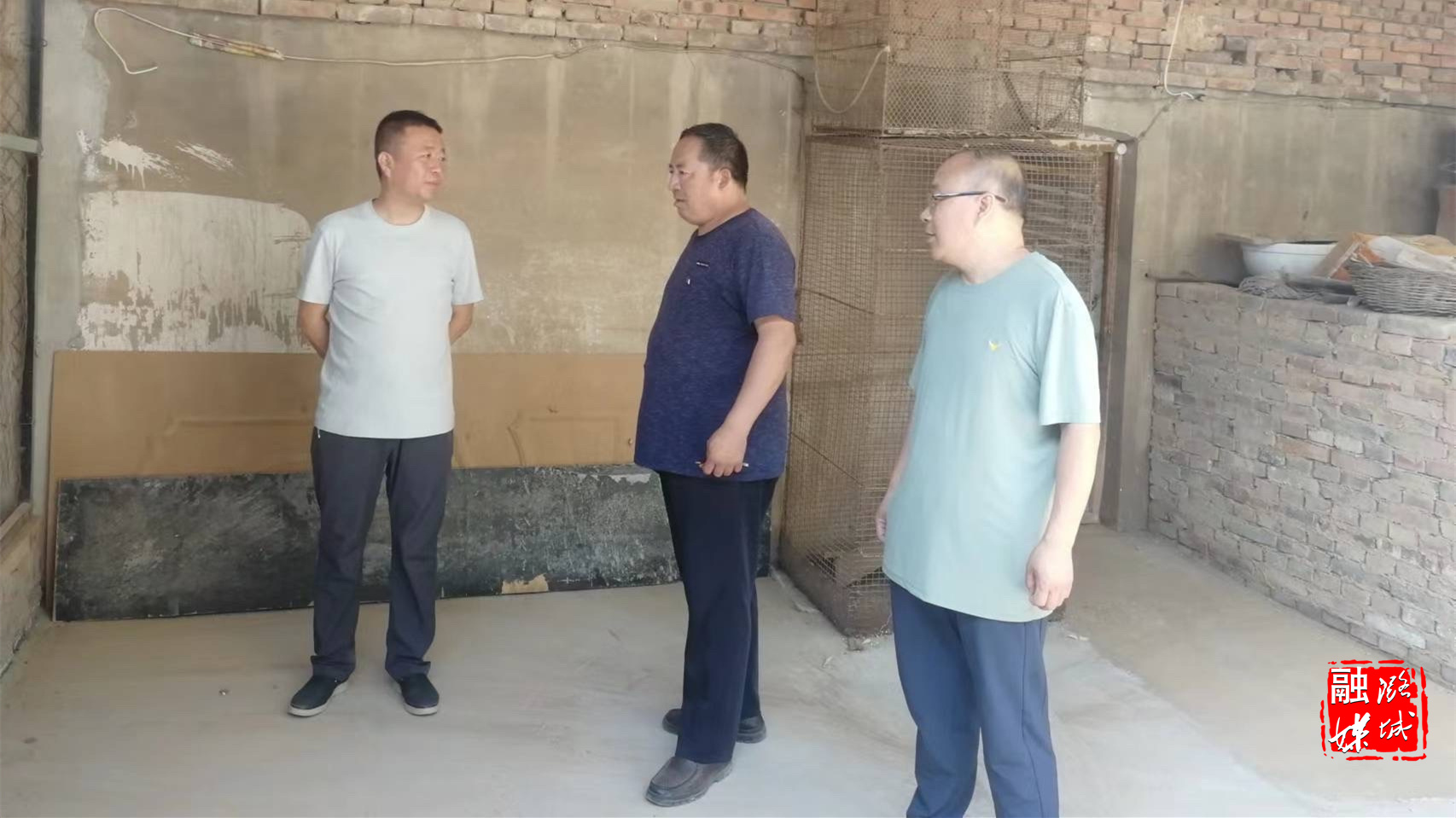 ▲黄牛蹄乡负责人到潦河村查看土鸡养殖情况。