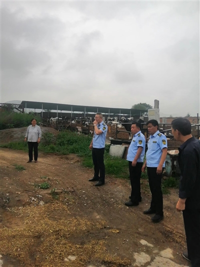 7月12日至13日,翟店街道综合行政执法队根据年度执法计划,对辖区畜牧企业(家庭农场)的兽药使用记录、动物无害化处理、粪污处理等进行执法检查。(图为在长治高新技术产业开发区康信养殖场检查粪污处理情况)