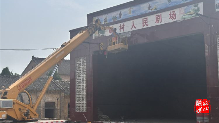 ▲店上镇韩村组织专人对村内舞台进行修缮,保障群众文娱活动场地安全。