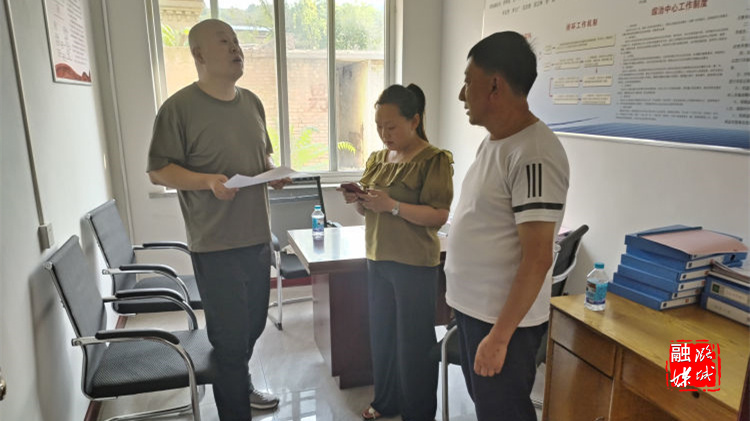 ▲黄牛蹄乡工作人员到上黄村查看村级社会治理中心建设情况。