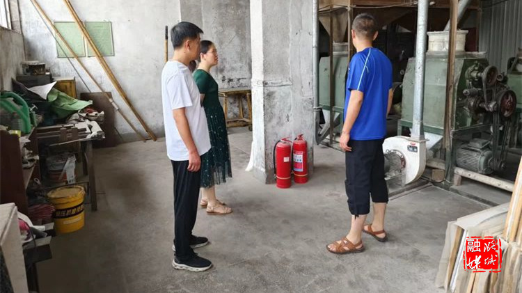 ★7月19日,微子镇安环站工作人员在春雨加油站、顺康面粉厂等企业检查安全、环保、消防等工作。