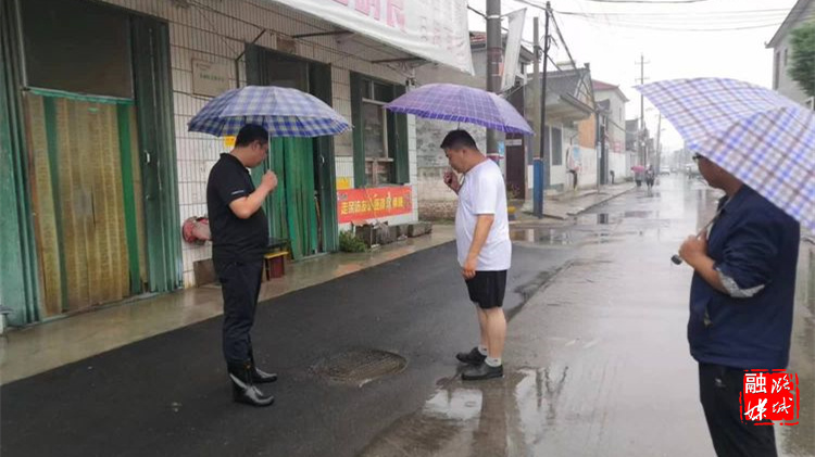▲微子镇相关负责人在村排查地质灾害隐患户转移和沟渠排水情况。