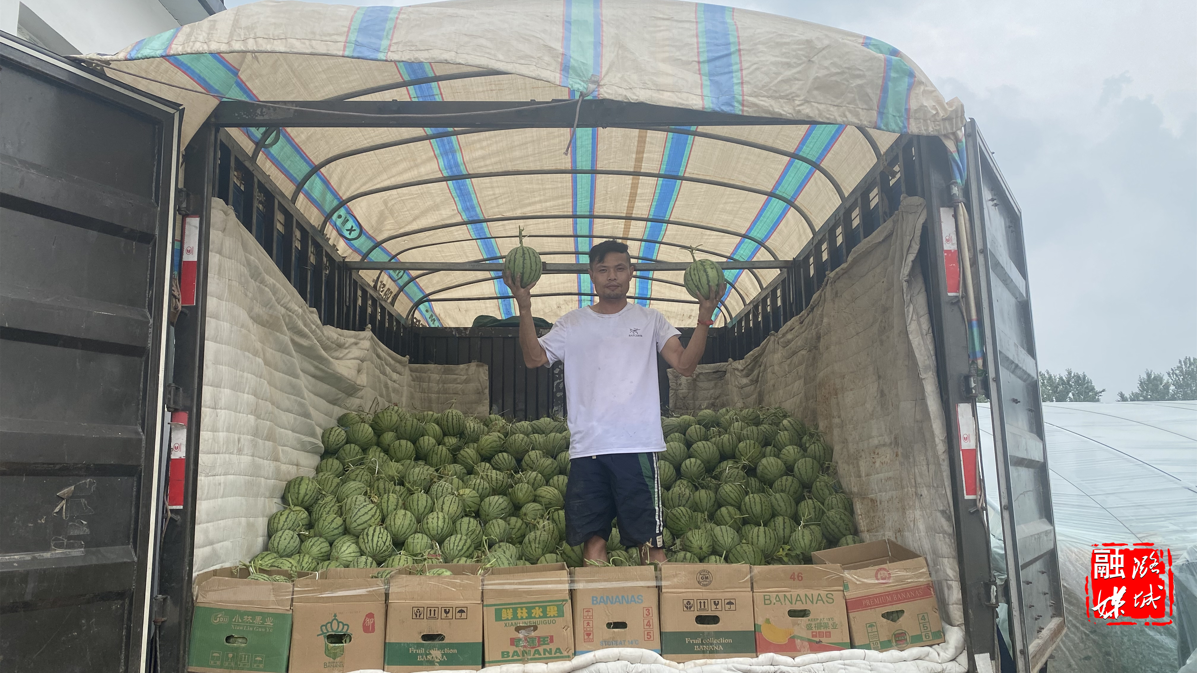 据悉,该村的西瓜有“2K小西瓜”、“甜王小西瓜”、“小蜜小西瓜”三个品种,品质好决定销路旺。只见小天贡进村道路上来来往往都是拉西瓜的货车,各地客商慕名前来订购,河北经销商王新强就是其中一位,“我今天这一车装了大概15000斤,一天一车,总共有30万斤,每年的销量都不少, 深受消费者喜爱,回头客特别多。”