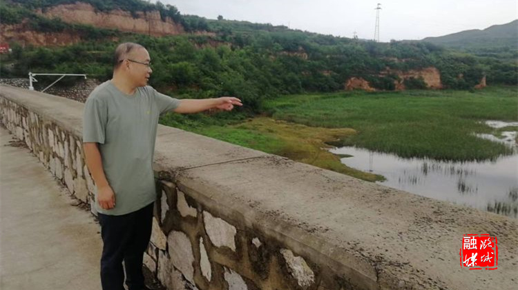 ▲黄牛蹄乡工作人员在黄牛蹄水库、李庄至辛安河道,查看汛期河道安全情况。