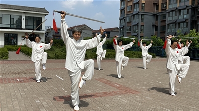 与此同时,潞华街道婴城社区举行“全民健身 太极同行”全民健身太极拳活动,授课老师为居民们讲解太极拳手法、身法、步法,并进行动作示范。一进一退之中演绎出太极的精妙、一招一式中舞动出太极的魅力,大家静心感受太极拳修身养性、陶冶情操的内涵。