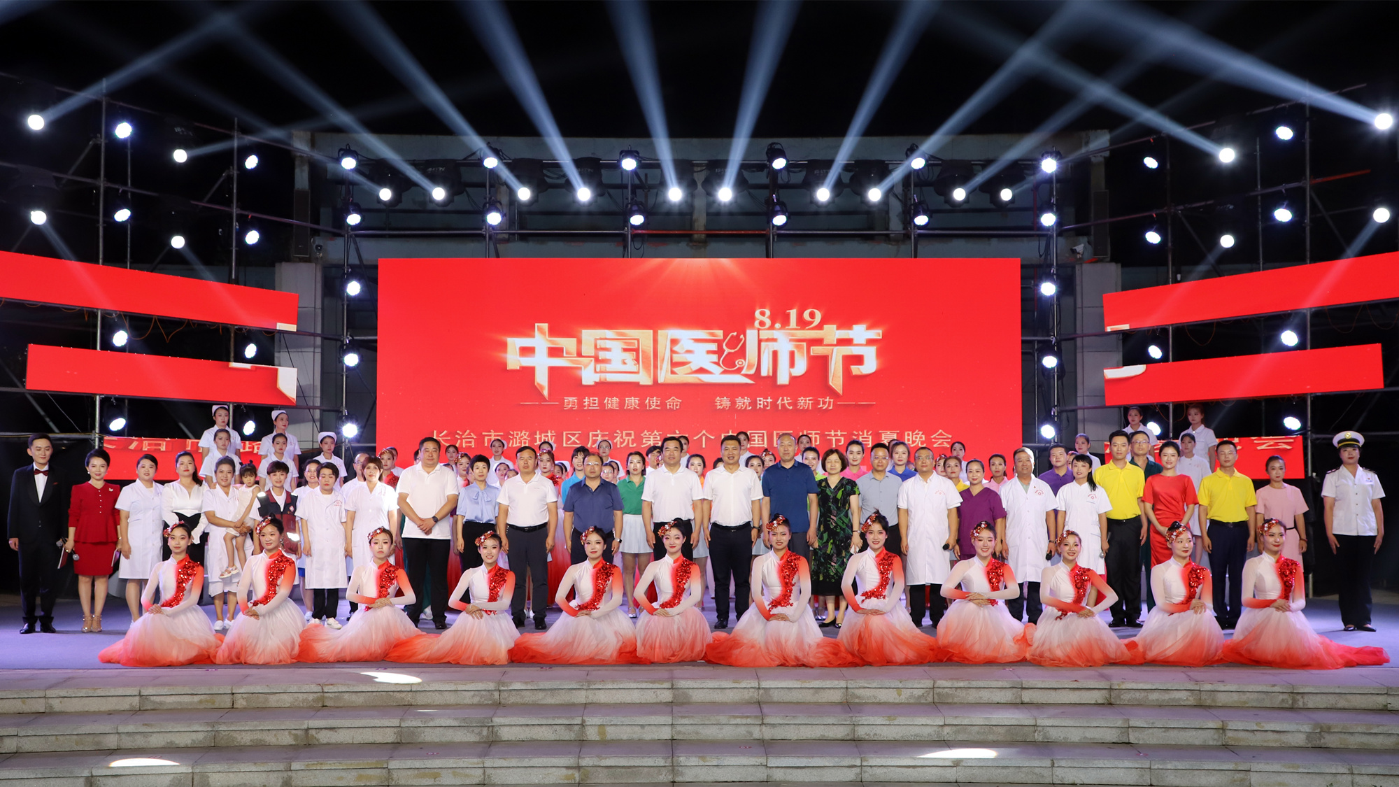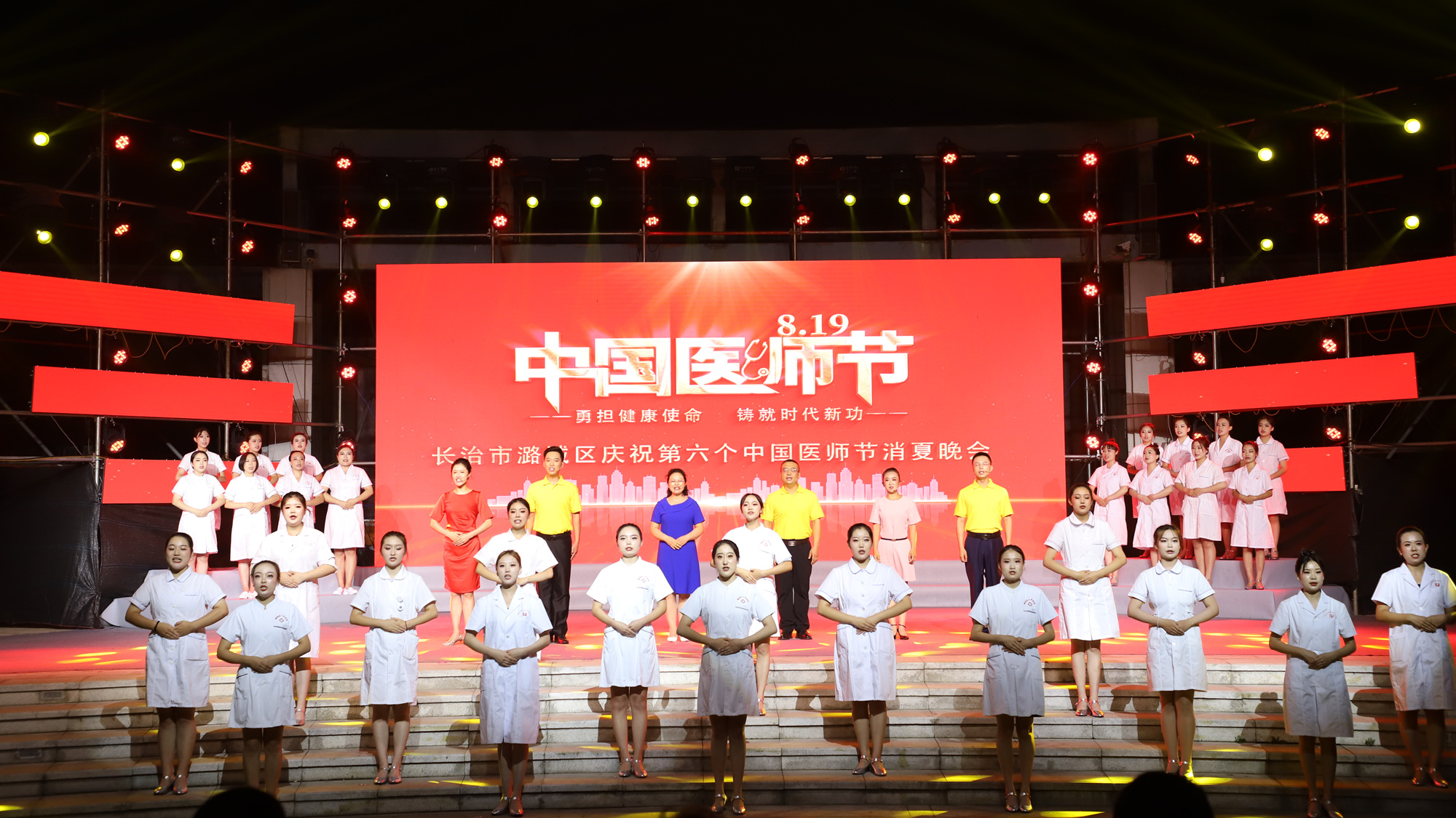 8月18日晚,“勇担健康使命 铸就时代新功”——潞城区庆祝第六个中国医师节消夏晚会在区世纪广场举行。长治医学院党委常委、副院长尚进平,区委副书记、区长柴哲,区委常委、组织部部长张学良,副区长王振华,区政协副主席李俊华,长治医学院附属和济医院党委书记李永红,长治医学院附属和平医院副院长王龙,清华大学美术学院环艺系副教授、博士生导师刘铁军,清华大学美术学院环艺系教授、硕士生导师刘北光等与广大市民一同观看演出。