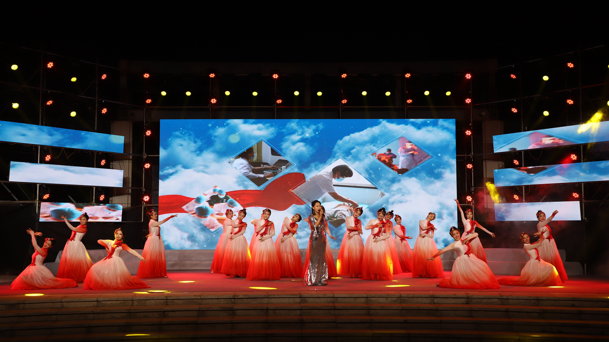 晚会在先导片《我们是医生》中拉开序幕,舞蹈《生命》、舞蹈《生命之城》、歌曲《最美》、音乐快板《喜赞医院换新颜》、诗歌朗诵《医心向党 初心不忘 向党和人民报告》、 情景舞蹈《一切为了健康》、《八段锦》、古筝演奏《万疆》、歌伴舞《“医”路生花》、歌曲《新的天地》、情景讲述《“医”声誓言 一生坚守》·《如愿》、歌伴舞《平凡的荣耀》等精彩节目轮番上演,充分展现了全区医务工作者奋发向上的精神风貌和勇担使命的职业风采。整场晚会精彩不断,高潮迭起,赢得台下阵阵掌声。晚会还向优秀医师代表、优秀护士代表、优秀乡村(社区)医生代表、最美医务家庭献花,进一步激励全区广大医务工作者弘扬“敬佑生命、救死扶伤、甘于奉献、大爱无疆”的崇高精神,爱岗敬业、恪尽职守,推动全区医疗卫生水平持续提升,为建设健康潞城作出新的更大的贡献。