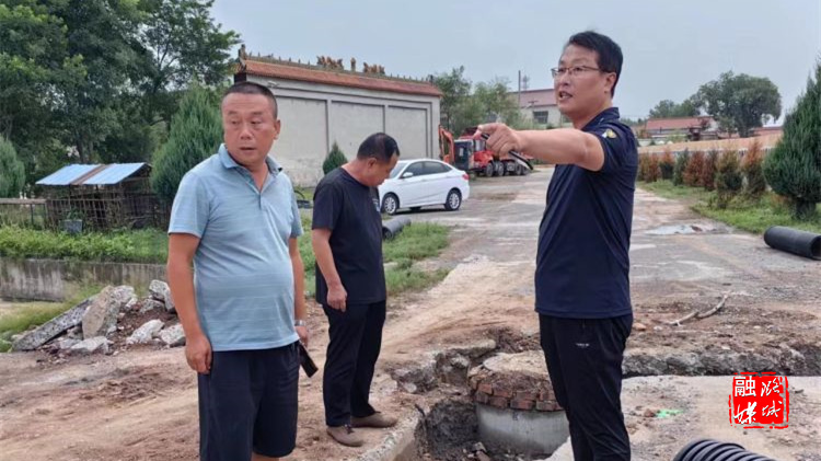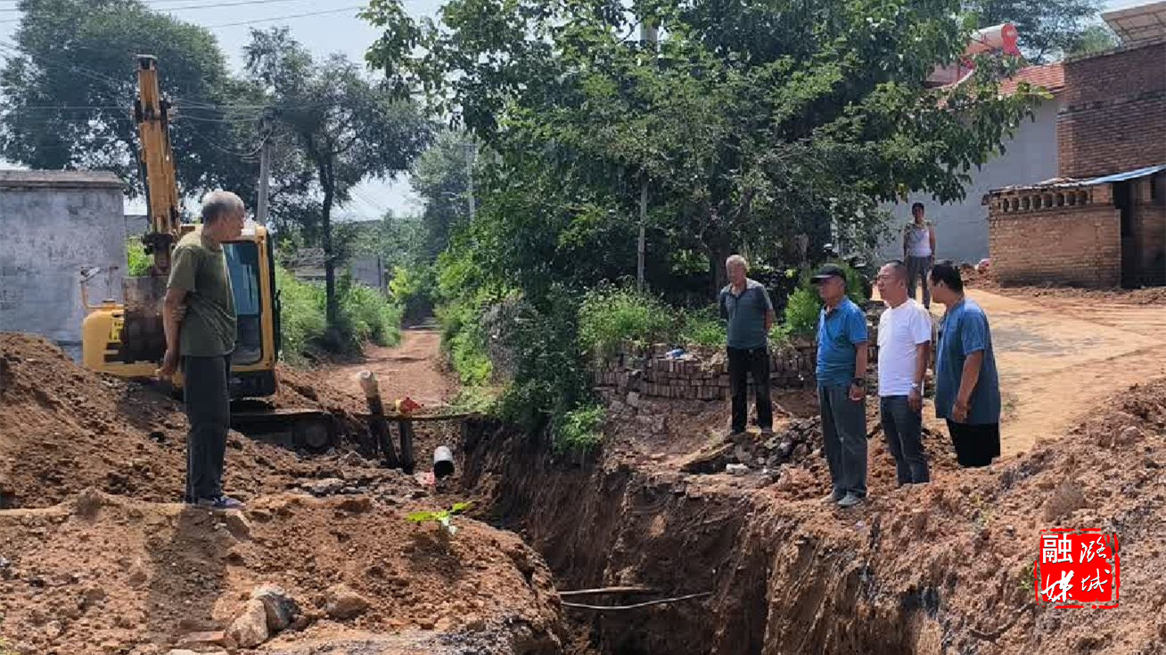 ▲史回镇工作人员到闫李庄村现场查看污水处理站及配套管网建设工程进度。