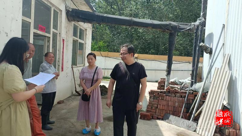 ▲微子镇工作人员在东靳村查看农村人居环境整治建设项目进展情况。