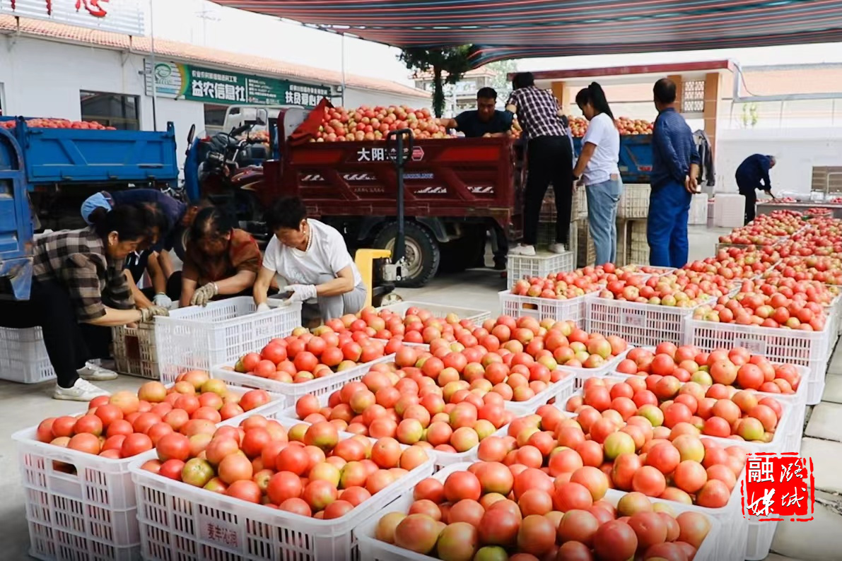一个多小时的时间,便见神泉村的村民们陆陆续续开着三马车、四轮车拉满西红柿往合作社里走。一眼望去,红彤彤的西红柿堆成了一座座小山,人们忙前忙后将西红柿从车上卸下来,这样热闹的场景每年八月都会在神泉村上演。