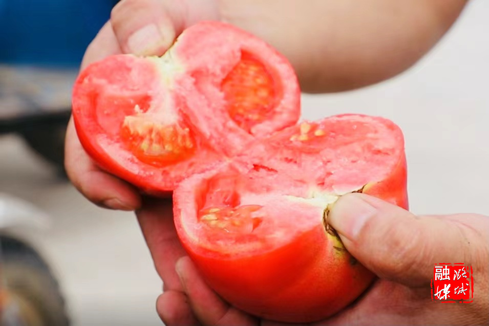 前些日子下了大雨,会不会对旱地西红柿的生长、收获带来影响?“没什么影响,我们现在采用高标准种植方式,上面搭建了防雹网,下面安装了膜下滴灌,无论是降雨还是干旱,咱们的西红柿都能‘平安长大’。”秦永斌一面说话,一面随手拿起一个西红柿掰开给记者看,“你看,我们种出的旱地西红柿,又绵又沙,口感酸甜,品相还好。”