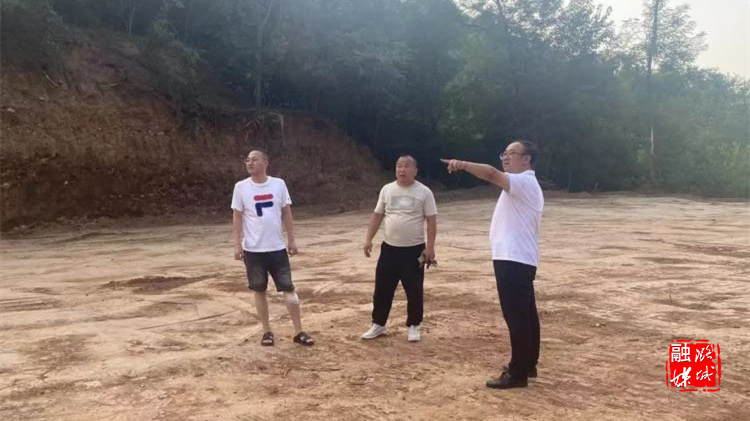 ★8月21日,微子镇相关负责人在漫流河村查看香菇种植场地平整情况。