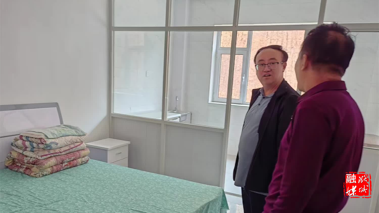▲微子镇相关负责人在韩家园村查看汛期周转房村民转移居住情况。