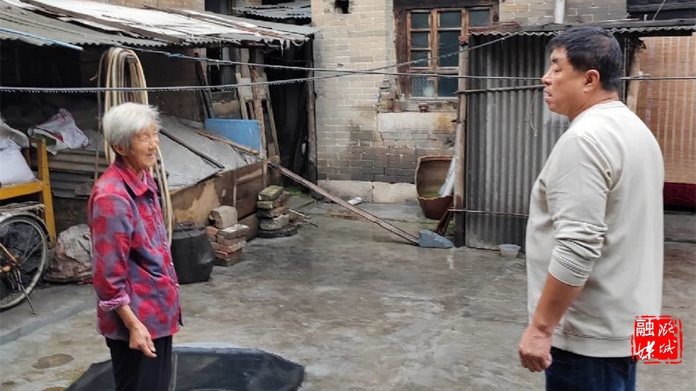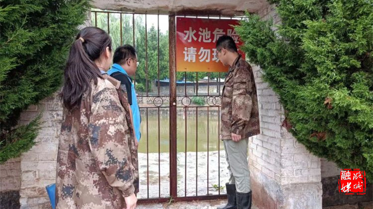 ▲成家川街道相关负责人在沟北村查看蓄水池排水情况。