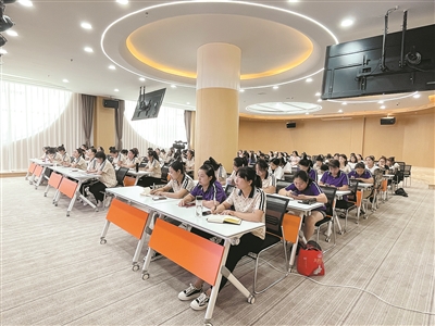 不仅如此,紫丹幼儿园还将重点放在师资力量的提升上,该校邀请紫丹各分校园长分享从业多年的经验,着重开展关于教育教学理念、课程设计、教学方法等多方面内容的培训,让老师们有新的学习和反思。刚结束培训的教师白娟表示:“幼儿园为我们提供了各式各样的培训,教师职业道德、规范行为礼仪、3-6岁儿童发展指南,这些培训都让我受益匪浅,收获很深。在新的学期,我也会把这些知识内化于心,外化于行,用更加认真严谨、负责地态度面对每一项工作和每一个孩子,绝不辜负每一位家长的信任和期待。”