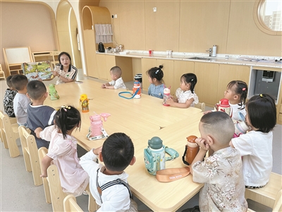 “打开电视机,拉长小天线……”伴随着亲切而又欢乐的儿歌,家长和孩子们一同进入缓释课的课堂。据了解,这是学校特意为即将入园的小朋友开设的缓释课程,这种“家长陪伴式入园”的方式不仅缓解了幼儿的焦虑,而且通过“大带小”的方式,让孩子们提前熟悉幼儿园的环境。紫丹幼儿园教师梁娜娜告诉记者:“每年的开学之初,很多小朋友都会有一定的焦虑情绪,作为老师,首先会开展一对一的家访工作,真正走进幼儿的家庭之中,了解孩子的生活环境;其次,孩子来园会带孩子熟悉幼儿园的环境,帮助小朋友和同伴之间建立友谊,产生亲近关系,让孩子爱上幼儿园,愿意来上幼儿园。”