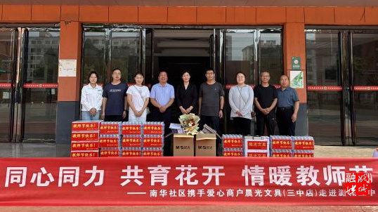 ★9月8日,潞华街道南华社区携手爱心商户晨光文具走进结对共建学校潞城三中开展“同心同力 共育花开 情暖教师节”活动。