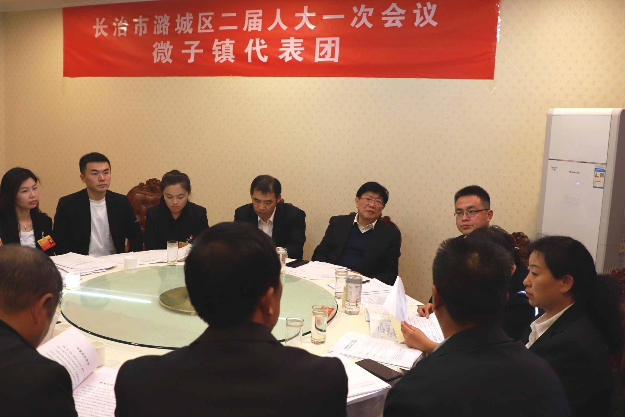4月17日下午,翟勇来到长治市潞城区二届人大一次会议微子镇代表团,与代表们一同审议政府工作报告。赵云斌一起审议。