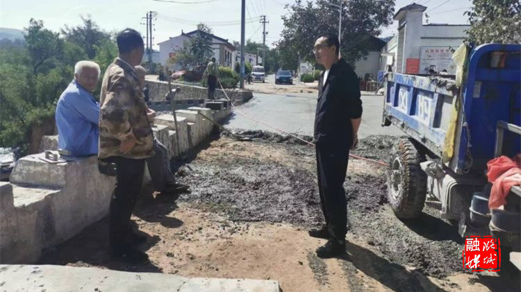 ▲成家川街道工作人员到驮坡村查看道路施工进展情况。