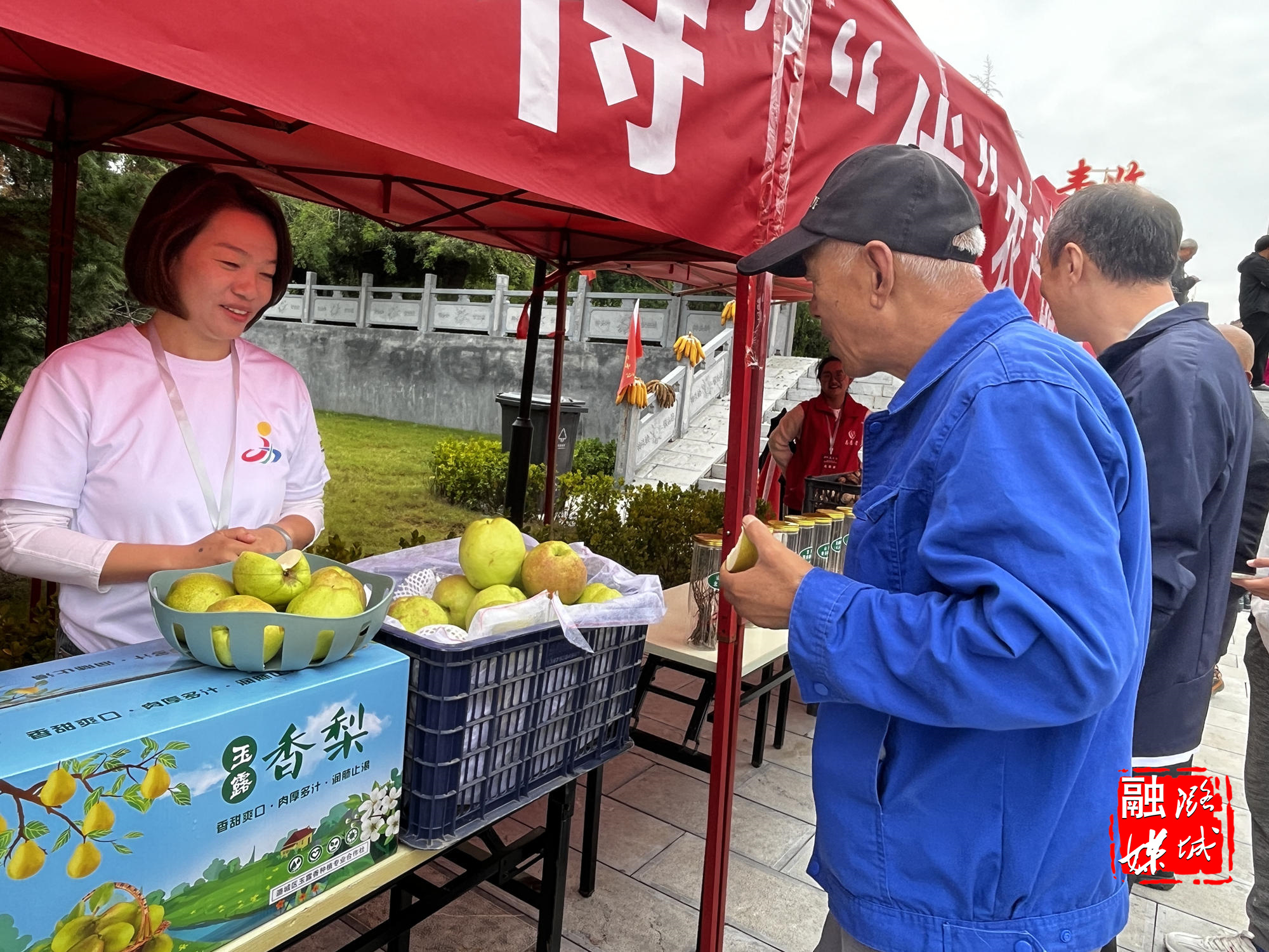 除了精彩绝伦的锣鼓表演,活动现场最惹人注目的便是三十余个来自各乡镇街道以及龙头企业的“特”“优”农产品展台。成家川街道的西红柿酱、潞华街道的大葱、辛安泉镇的红薯粉条、史回镇的玉露香梨纷纷亮相。