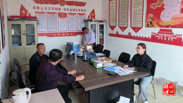 ▲辛安泉镇相关负责人在石梁村查看乡村振兴资料收入测算情况,详细了解脱贫户、监测户收入,并就相关资料存在问题提出整改意见。