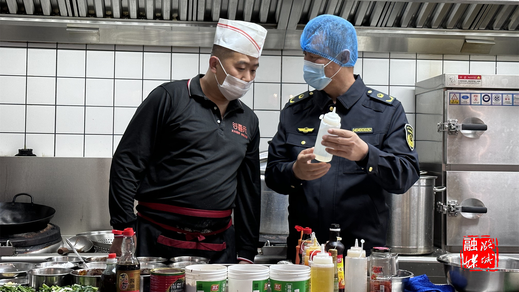 “请出示一下健康证。”在摩坊金街部分餐饮店,执法人员仔细查看食品安全管理台账及相关证件,重点检查餐饮从业人员管理、厨房环境卫生、食品加工流程、食品原辅料贮存等。