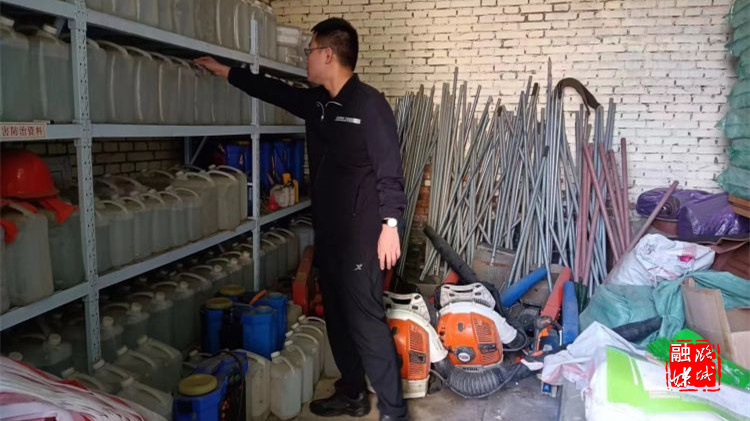 ▲黄牛蹄乡相关负责人检查清点防火物资储备情况。