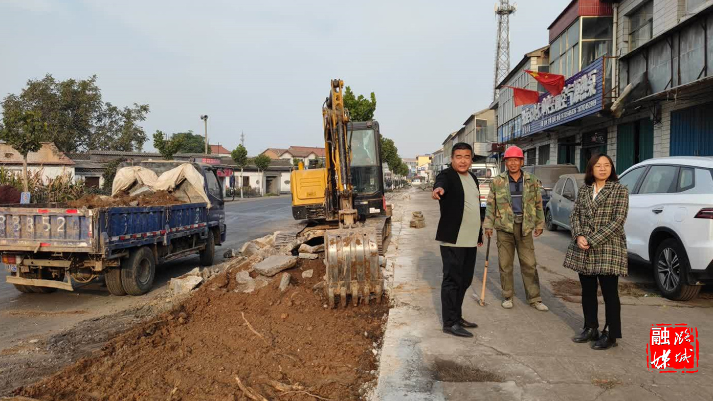 ▲微子镇相关负责人在324省道查看路沿改造工作进展情况。