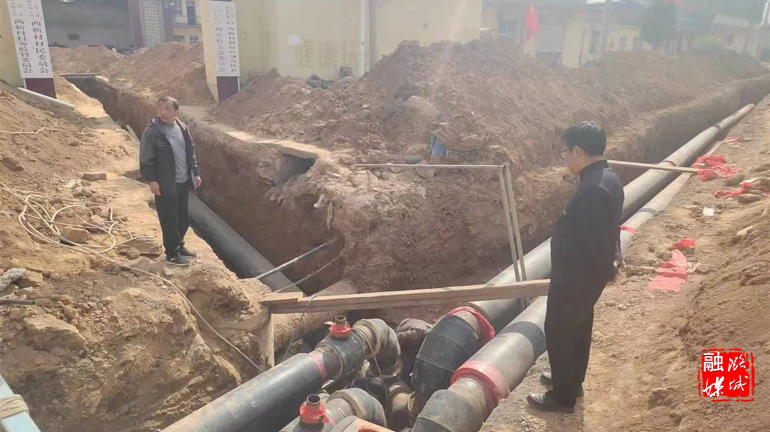 ★10月17日,微子镇相关负责人在西靳村查看集中供暖工程施工进度。