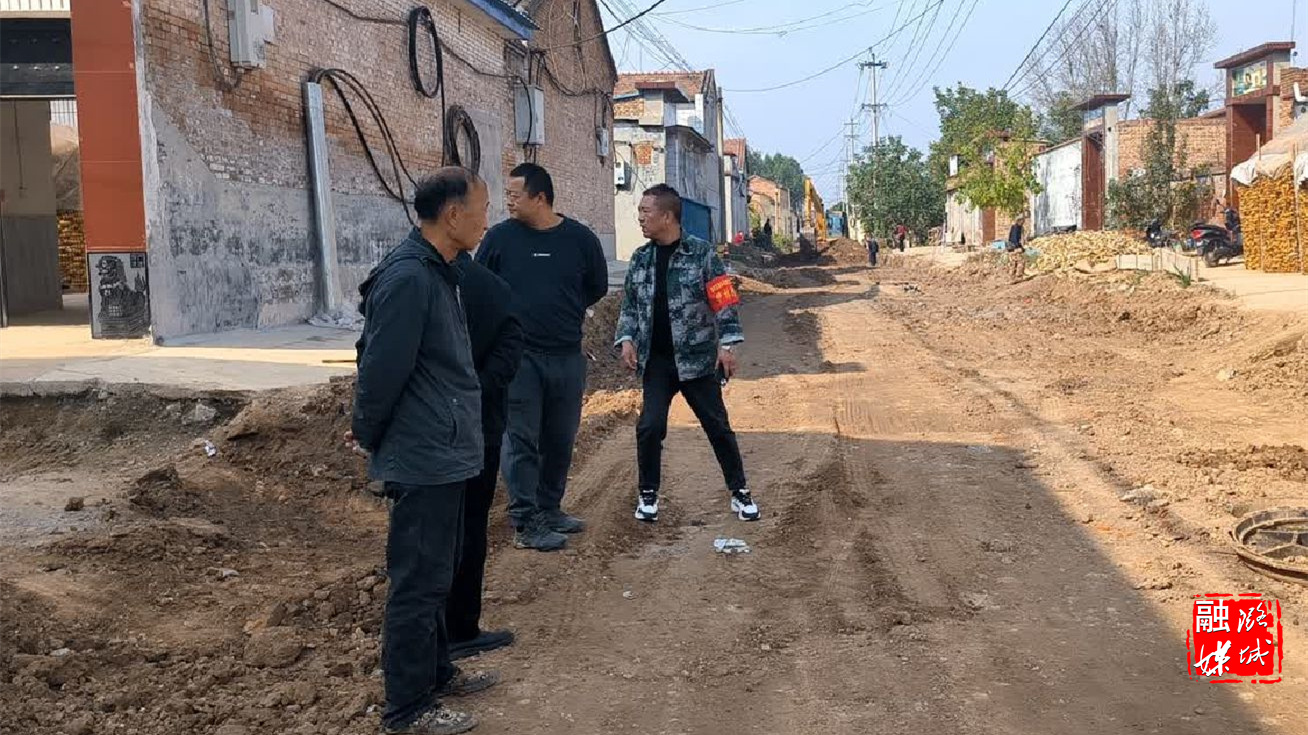 ▲微子镇相关负责人在东靳村协调雨污分流施工事宜。