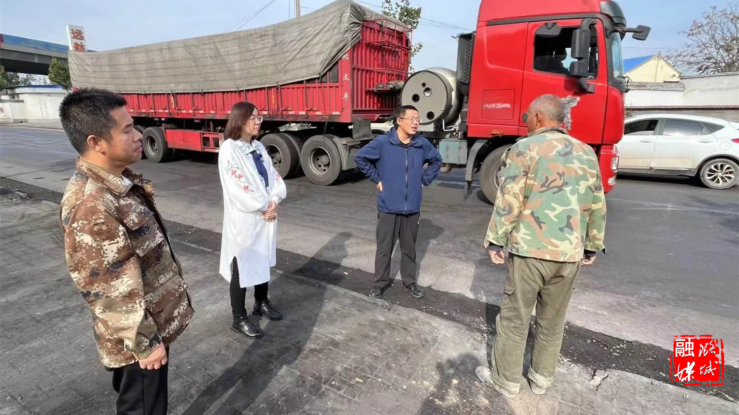★10月18日,微子镇相关负责人在324省道查看路沿改造工作进展情况。