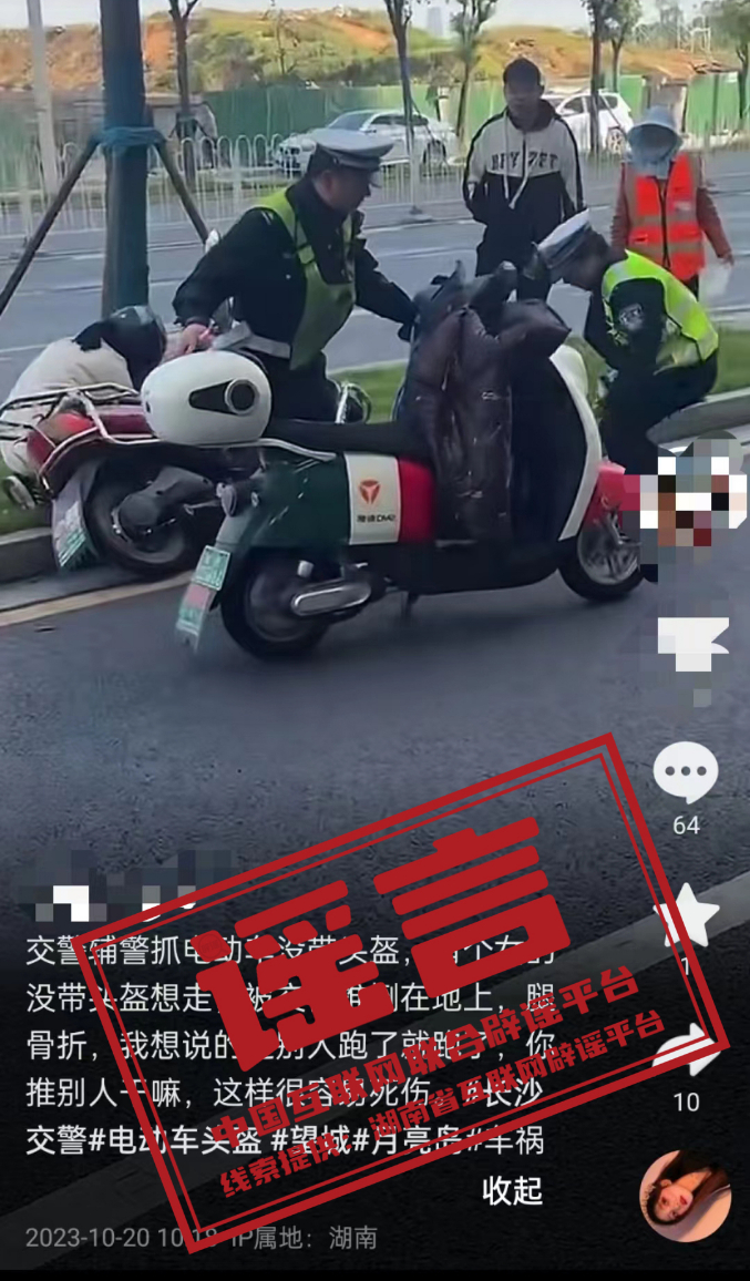谣言:长沙交警执法时推倒电动车?
