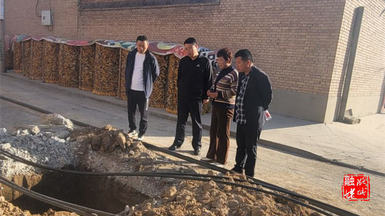 ▲翟店街道工作人员到郭村查看水网改造工程施工进度。